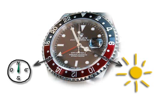 Orientarsi con GMT-Master ed Explorer II Gli orologi che hanno la lancetta delle 24 ore possono essere usati in modo abbastanza semplice come sostituti della bussola. E'
